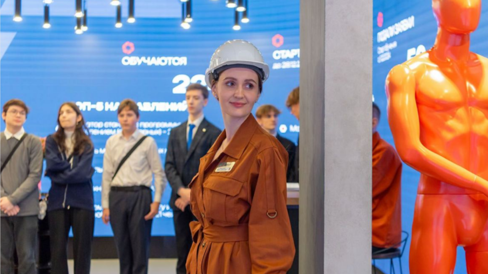 Определить подходящую профессию будущего можно и с помощью нейросети «Кандинский». Для этого посетителю нужно встать на точку перед интерактивным экраном, после чего его отсканирует камера. Данные обработает искусственный интеллект. Нейросеть может предложить разные интересные профессии, например нейромаркетолога или биоинформатика. На интерактивном экране выводятся краткая информация о профессии и необходимые ключевые навыки.