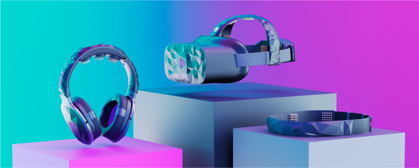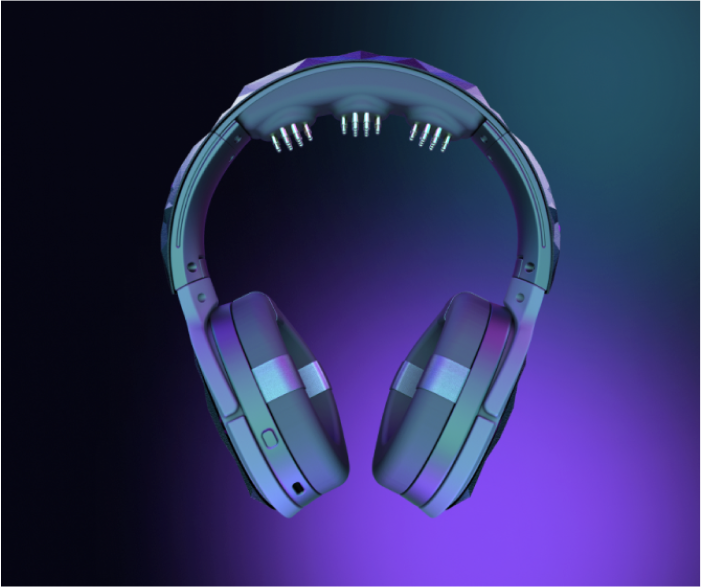 Наушники с 5 мягкими подвижными электродами для считывания электрической активности мозга.